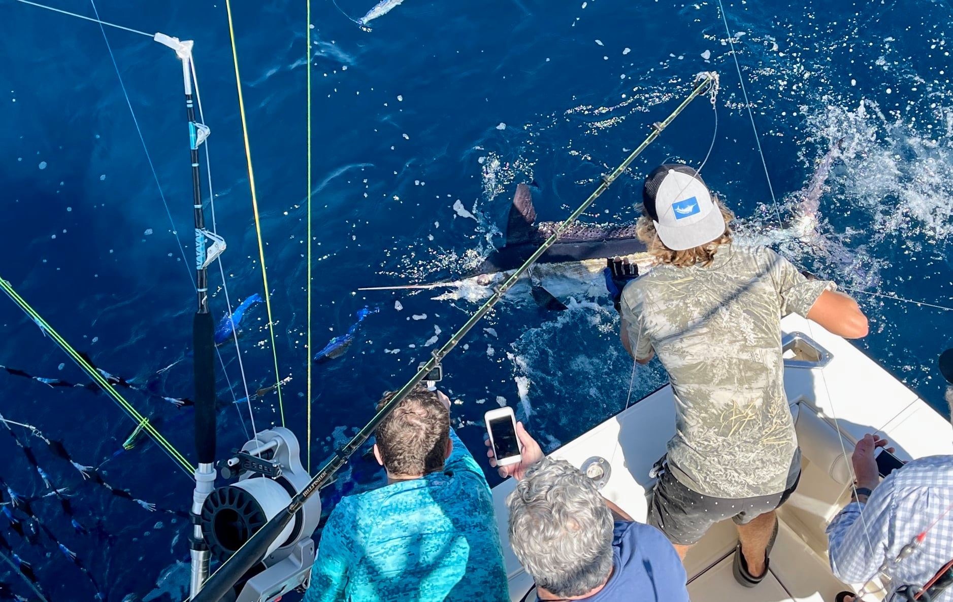 Reel screams off, you grab the reel and the battle begins. Some battles can last 30-60 minutes when the Tuna and the Blue Marlin are around and just a few minutes or longer when the Mahi-Mahi take your bait. The beauty of fishing the deep blue waters is you never can tell what’s going to eat your bait, it might be a Tuna, Dolphin fish, Marlin, Bluefin Tuna or even a Wahoo.
