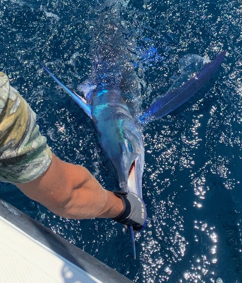 Fishing for White and Blue Marlin is one of the most spectacular offshore trips you can go on. Trolling along and sometimes watching a big fin and or Bill sweeping through our spread and waiting for which bait it decides to eat is a heart pounding experience to say the least.